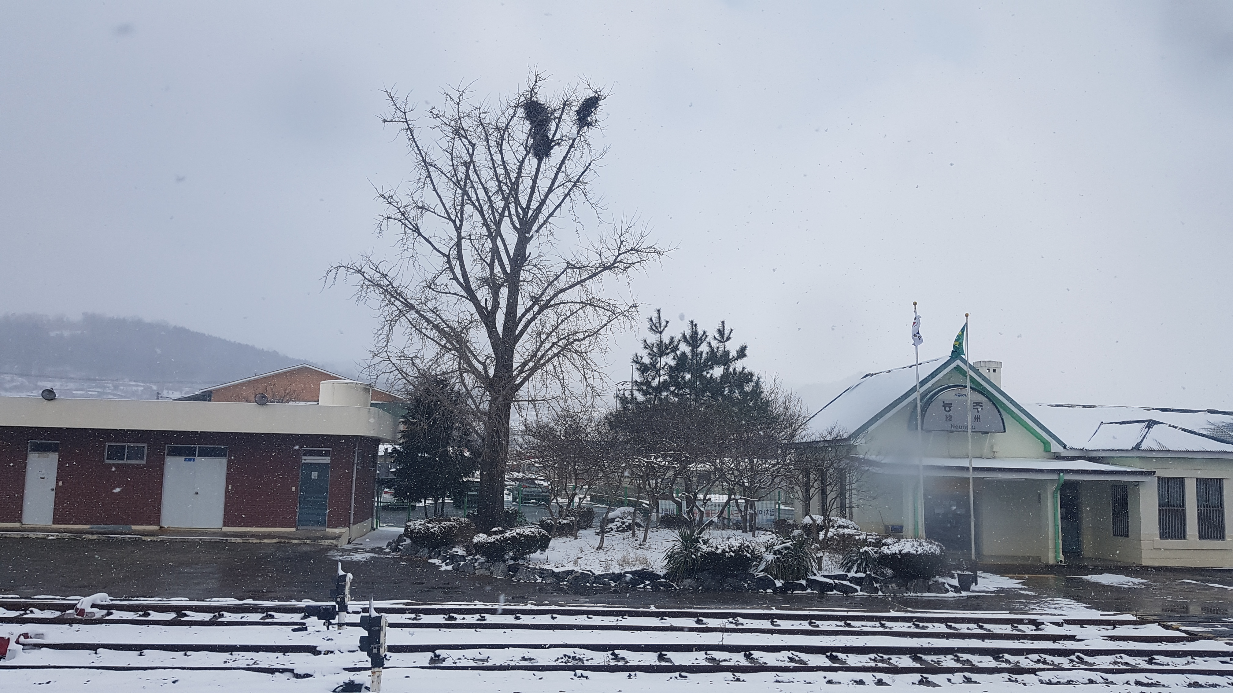 날씨는 영하 4도 였지만 바람이 강해 체감온도는 훨씬 낮을 듯, 눈은 계속 내린다.