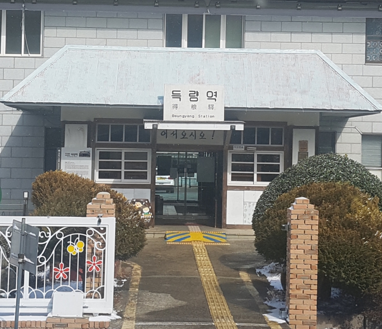 득량역사 입구에 적힌 인삿말이 정겹다.